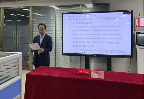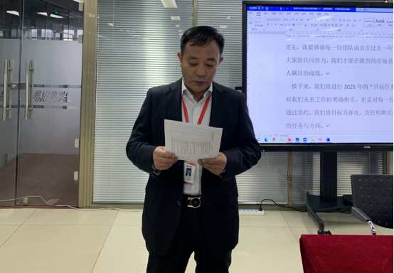 會議伊始,公司董事長于洋總發表講話。目標責任書的簽約不僅對我們未來工作有了明確的指引,更是對每一位業務人員的責任與期望。通過簽約,我們將目標具體化、責任明晰化,確保每一個人都清楚自己的任務與方向。希望大家從這一刻起,改變自我,以高度責任感和使命感,認真對待每一項任務,確保目標如期完成。我們要以團隊的力量,共同迎接挑戰,創造更加輝煌的業績!