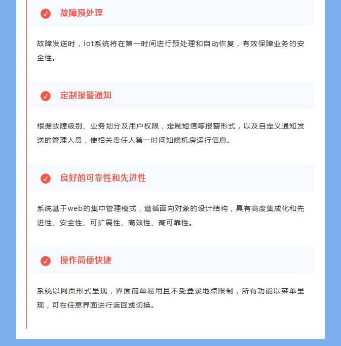 金山頂尖數據中心智慧管理平臺 助您實現可視化運維 2022-03-18數據中心智慧管理平臺(以下簡稱“IOT系統”)采用了大數據、云計算的最新研究成果和技術,實現了大規模數據中心的集中管理、實時監控、智能優化、安全運行。通過對本地、異地數據中心機房的服務器、存儲、網絡、安全、動力環境等設備及應用服務的運行情況實時監控,精確采集、分析、判斷系統性能,采用預防性警示、故障自動報警和處理、運維數據分析等措施,綜合大數據分析和計算的成果,向管理、使用和維護人員提供科學的運行數據、合理的決策信息和升級改造建議,確保大規模數據中心機房穩定、安全、高效地運行。